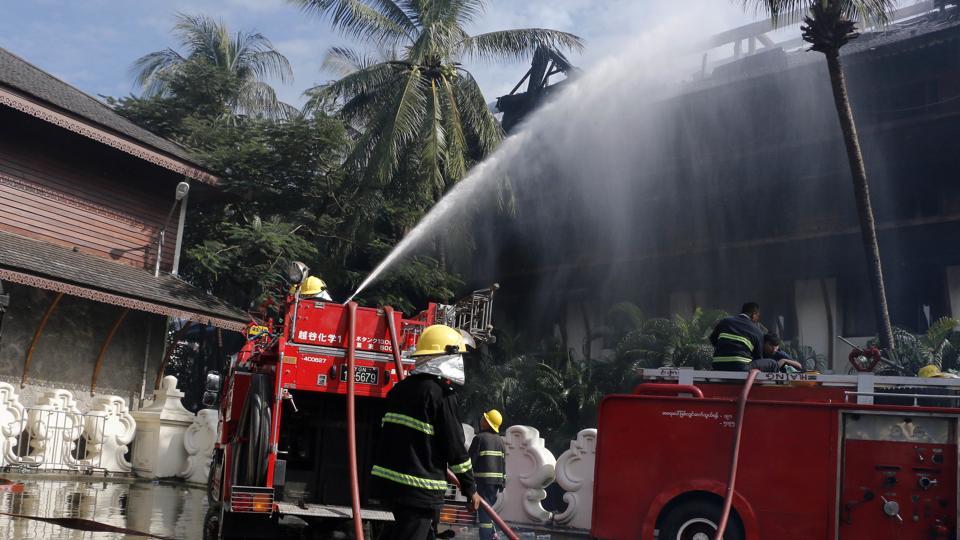 Yangon: A fire gutted a luxury teakwood hotel popular with foreigners in Myanmar’s biggest city of.
