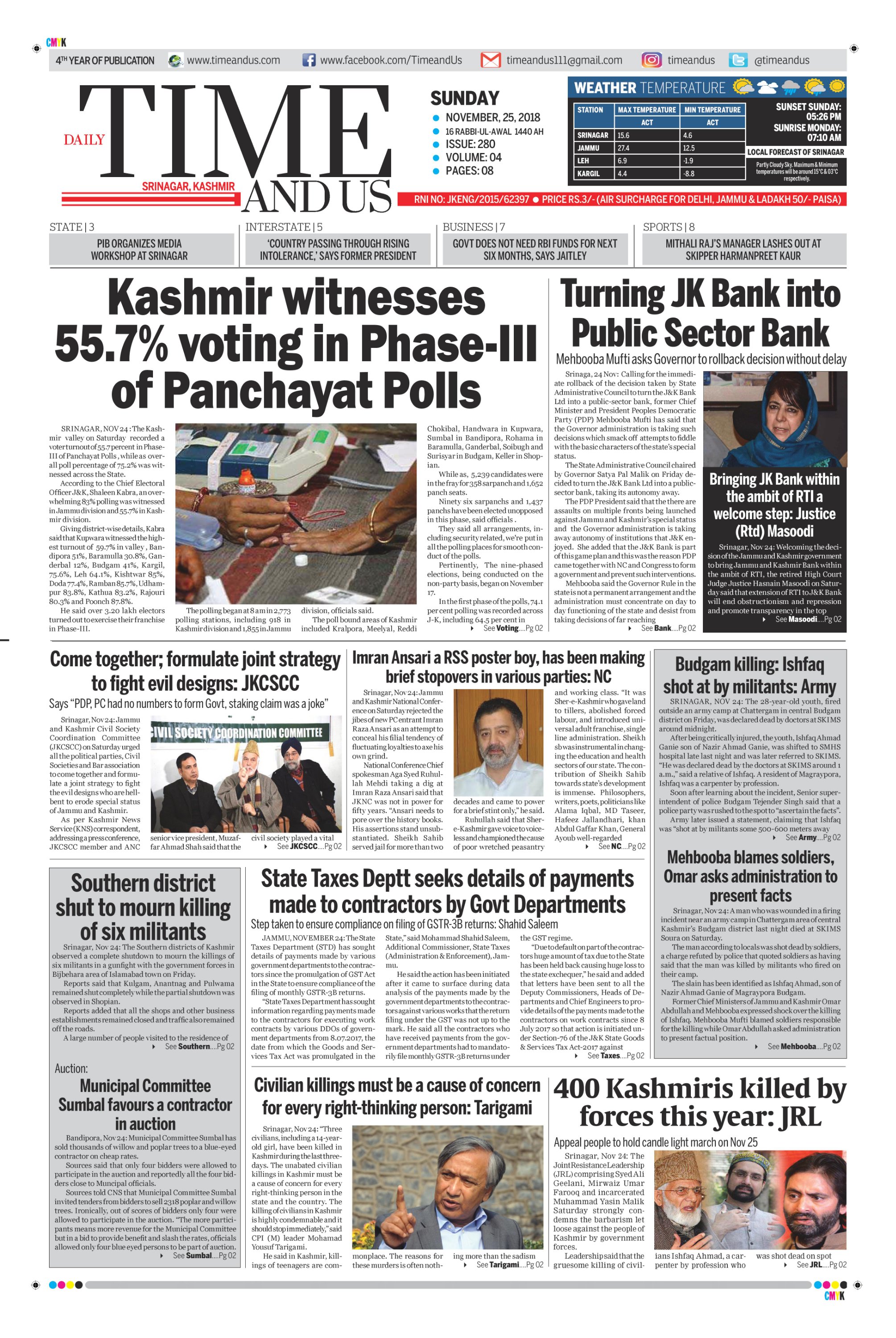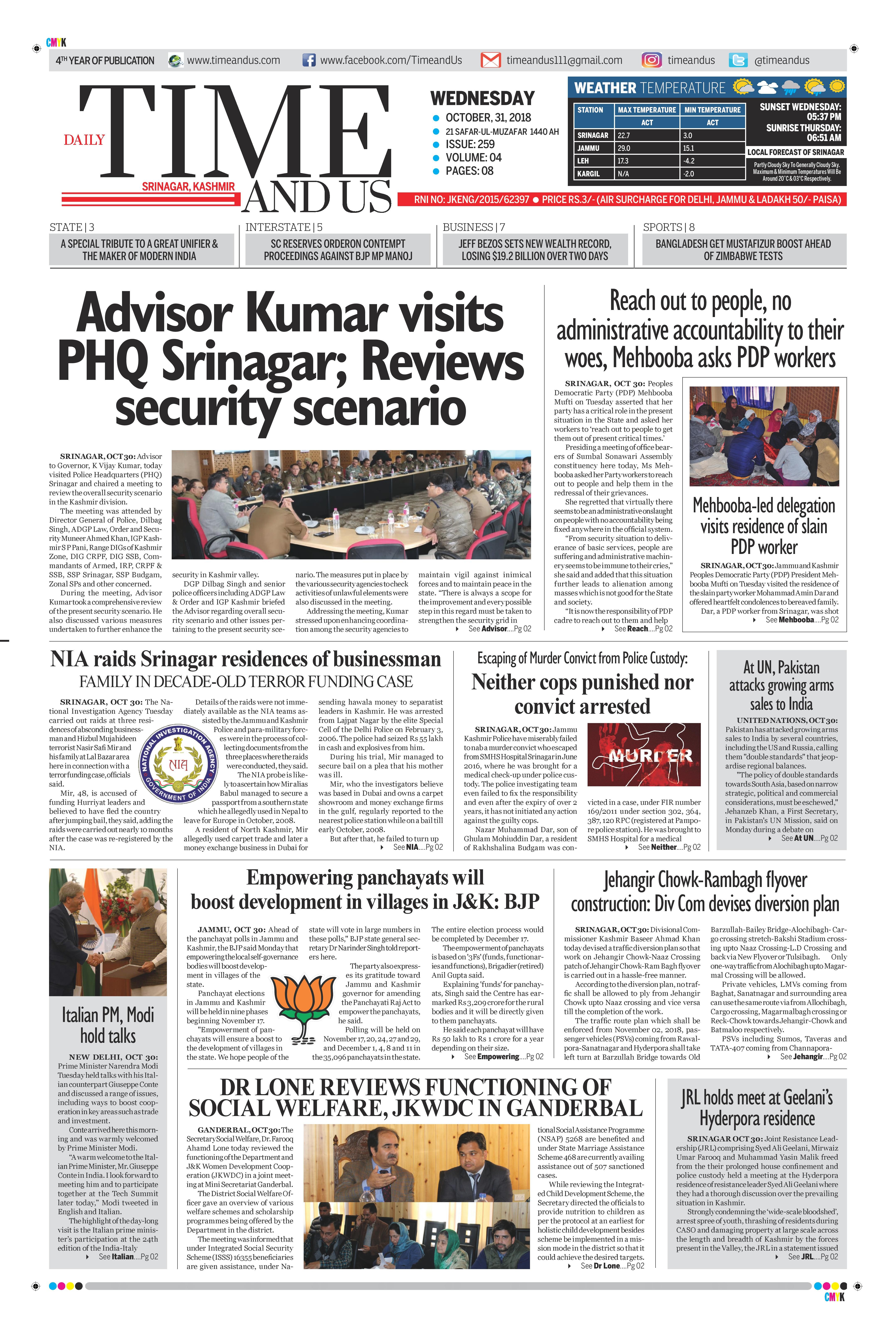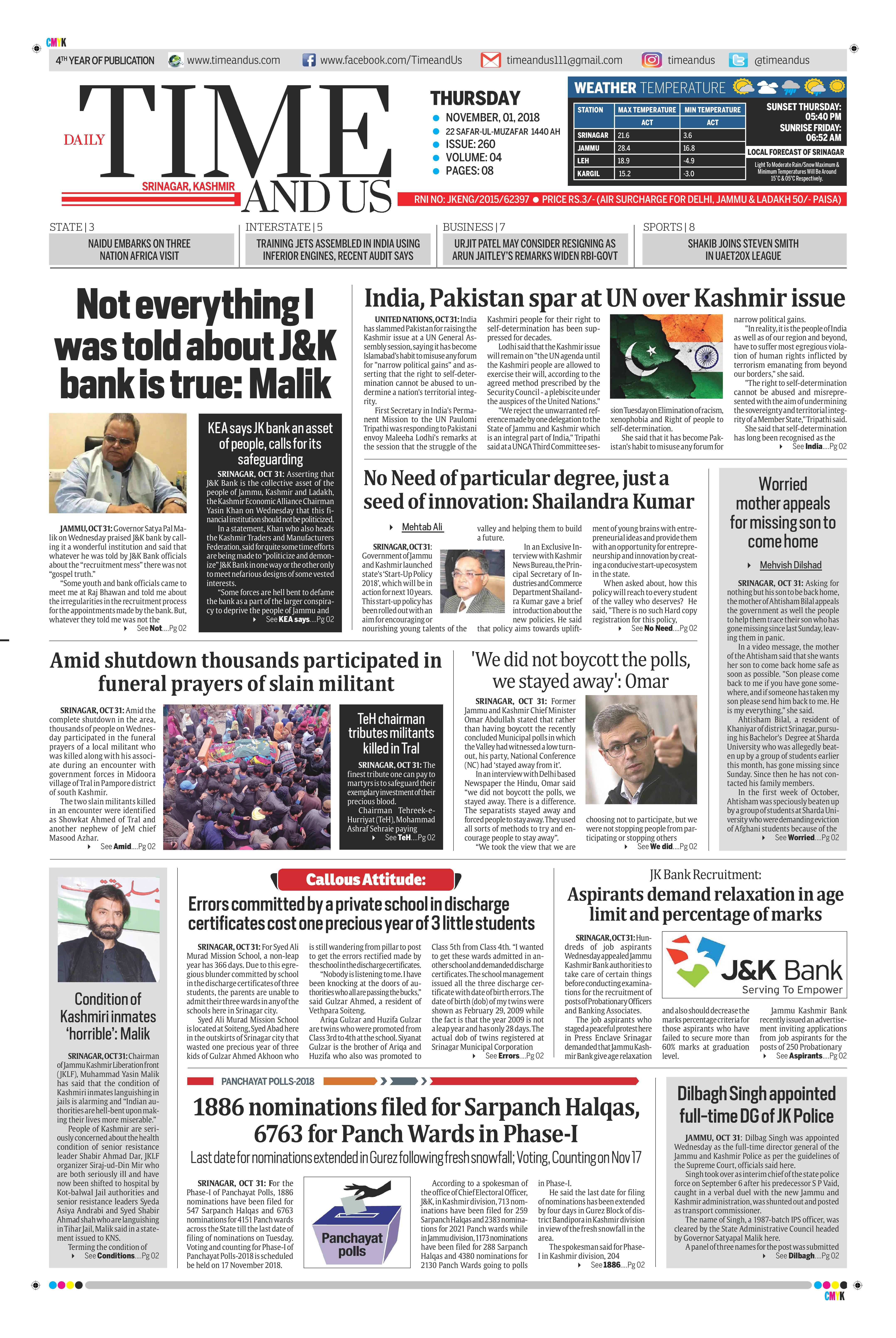 Edition: Visit our Today’s Leading Newspaper English Daily “Time and Us” 31 Aug 2018