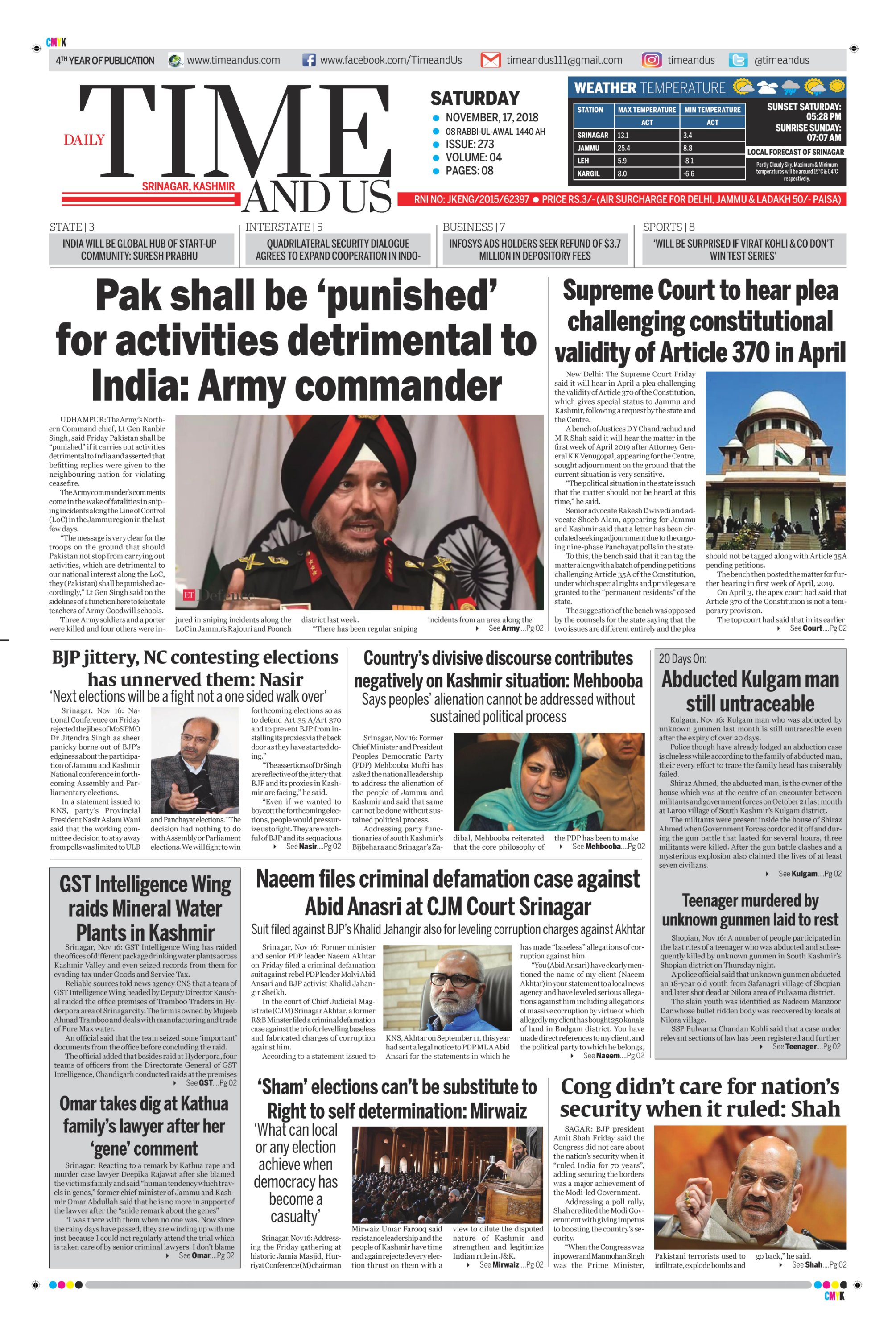 Edition: Visit our Today’s Leading Newspaper English Daily “Time and Us” 28 Aug 2018