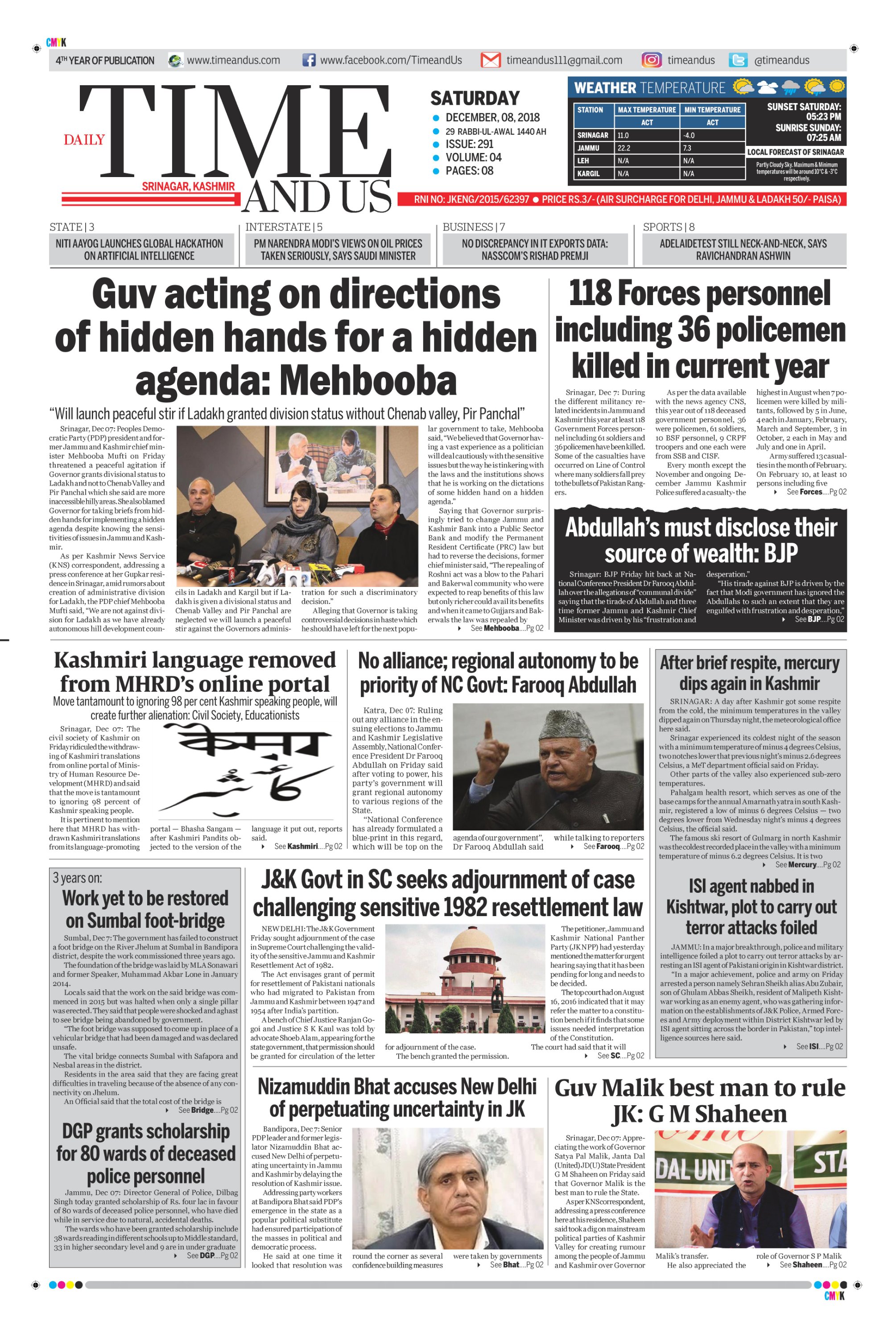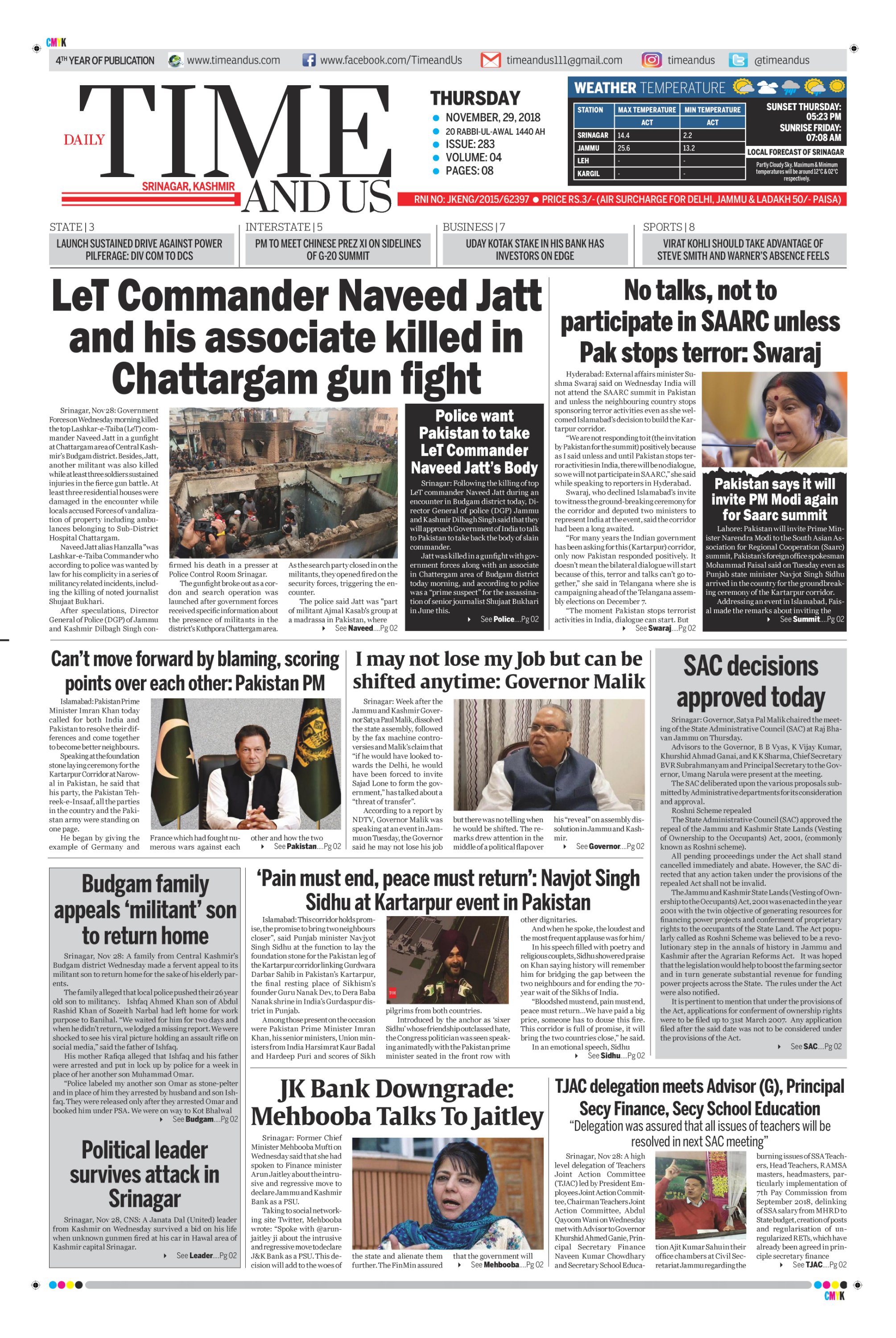 Edition: Visit our Today’s Leading Newspaper English Daily “Time and Us” 29 Aug 2018