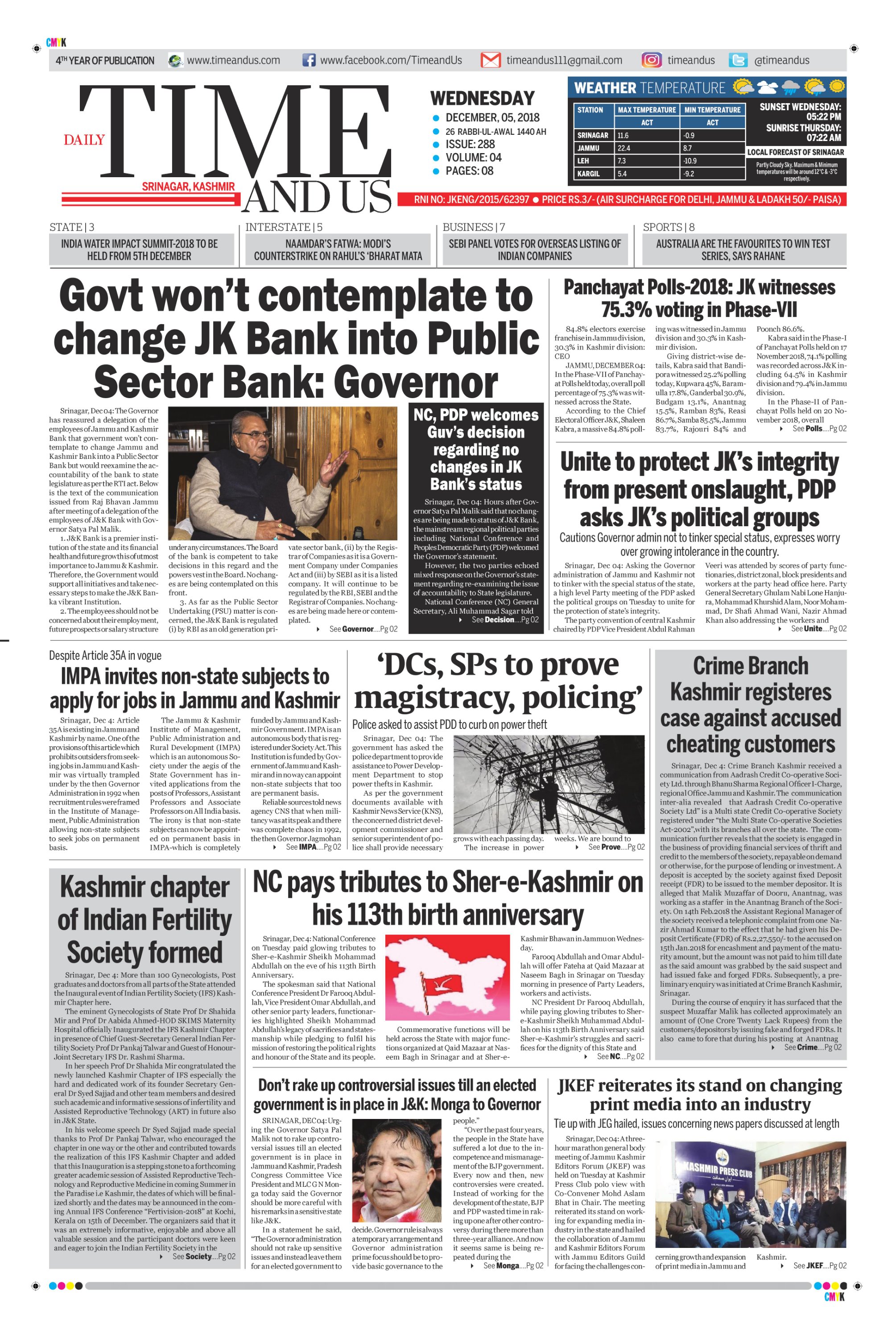 Edition: Visit our Today’s Leading Newspaper English Daily “Time and Us” 04 Sep 2018