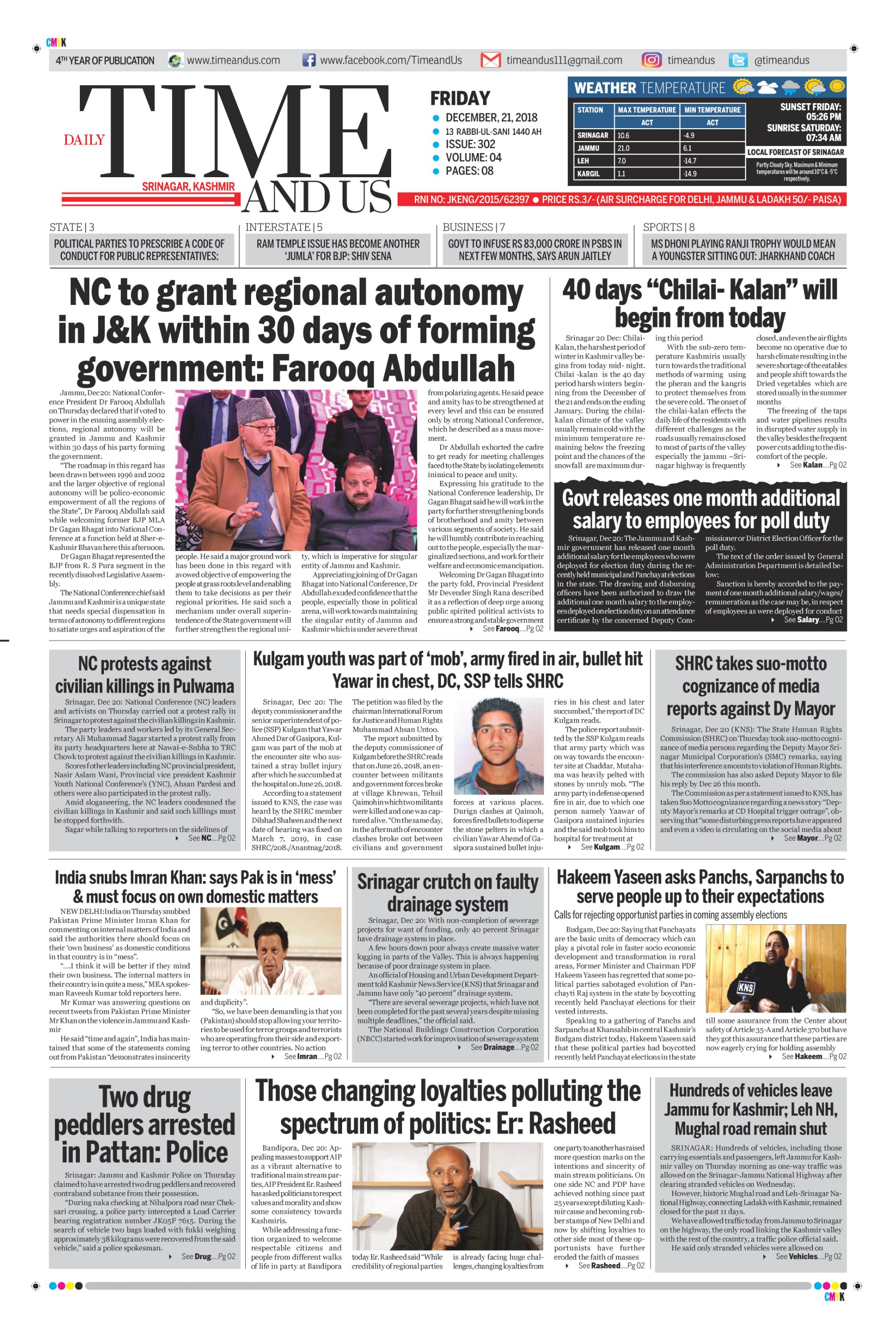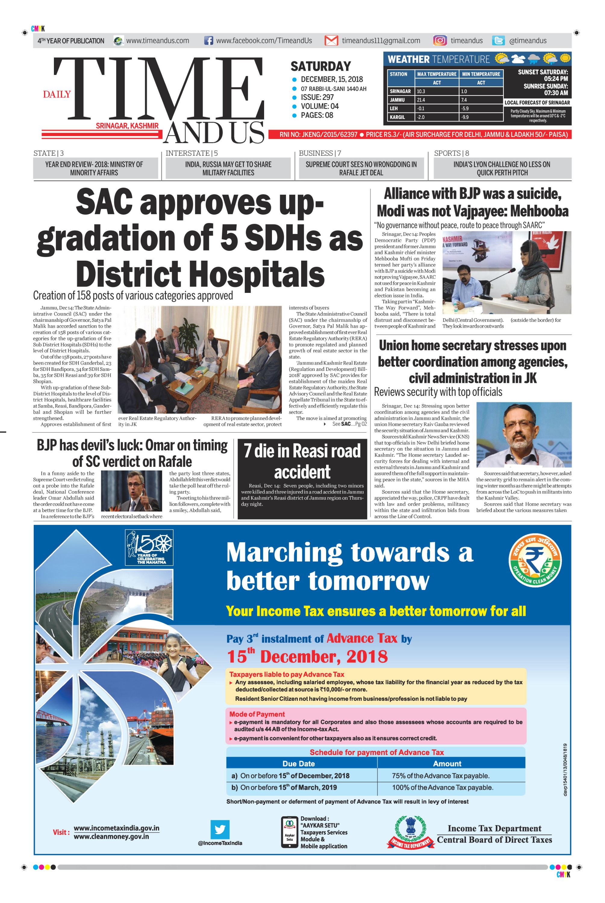 Edition: Visit our Today’s Leading Newspaper English Daily “Time and Us” 22 Aug 2018